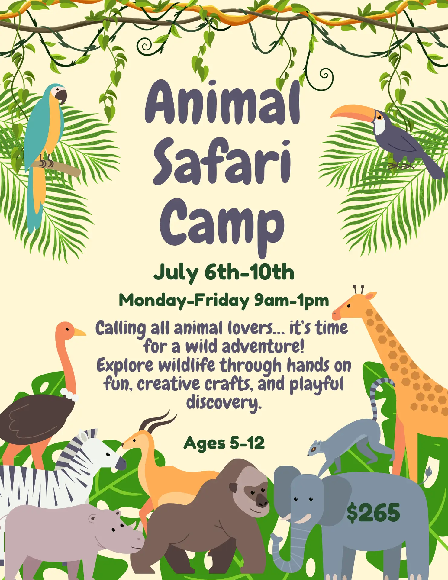 Join us for Animals & Safari Camp at The Shanty & Co where campers will explore the wonders of wildlife through hands-on activities, creative crafts, and playful exploration. From jungle safaris to learning about animals big and small, every day is packed with discovery.