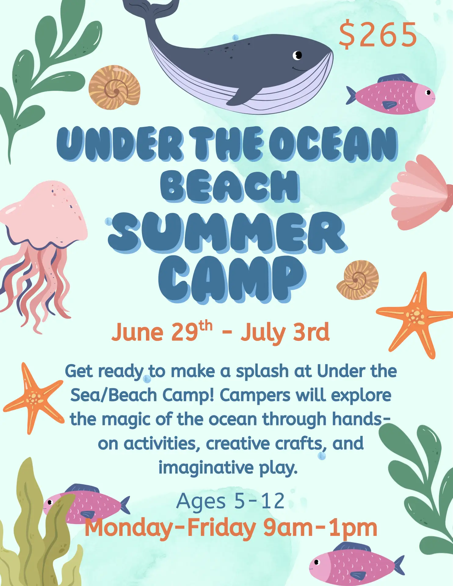 Monday, June 29 – Friday, July 3 | 9AM – 1PM | $265 + $215 Sibling Discount or $65 per day | Ages 5-12